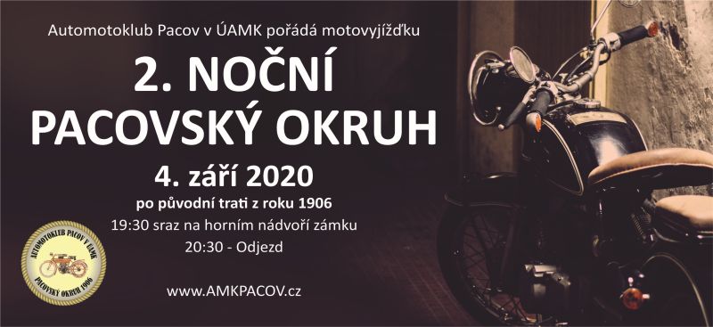 Tento víkend bude v Pacově ve znamení motorek. Více k pozvánce na Noční pacovský okruh 2020 se dozvíte v odkaze přes přiložený plakát akce.
