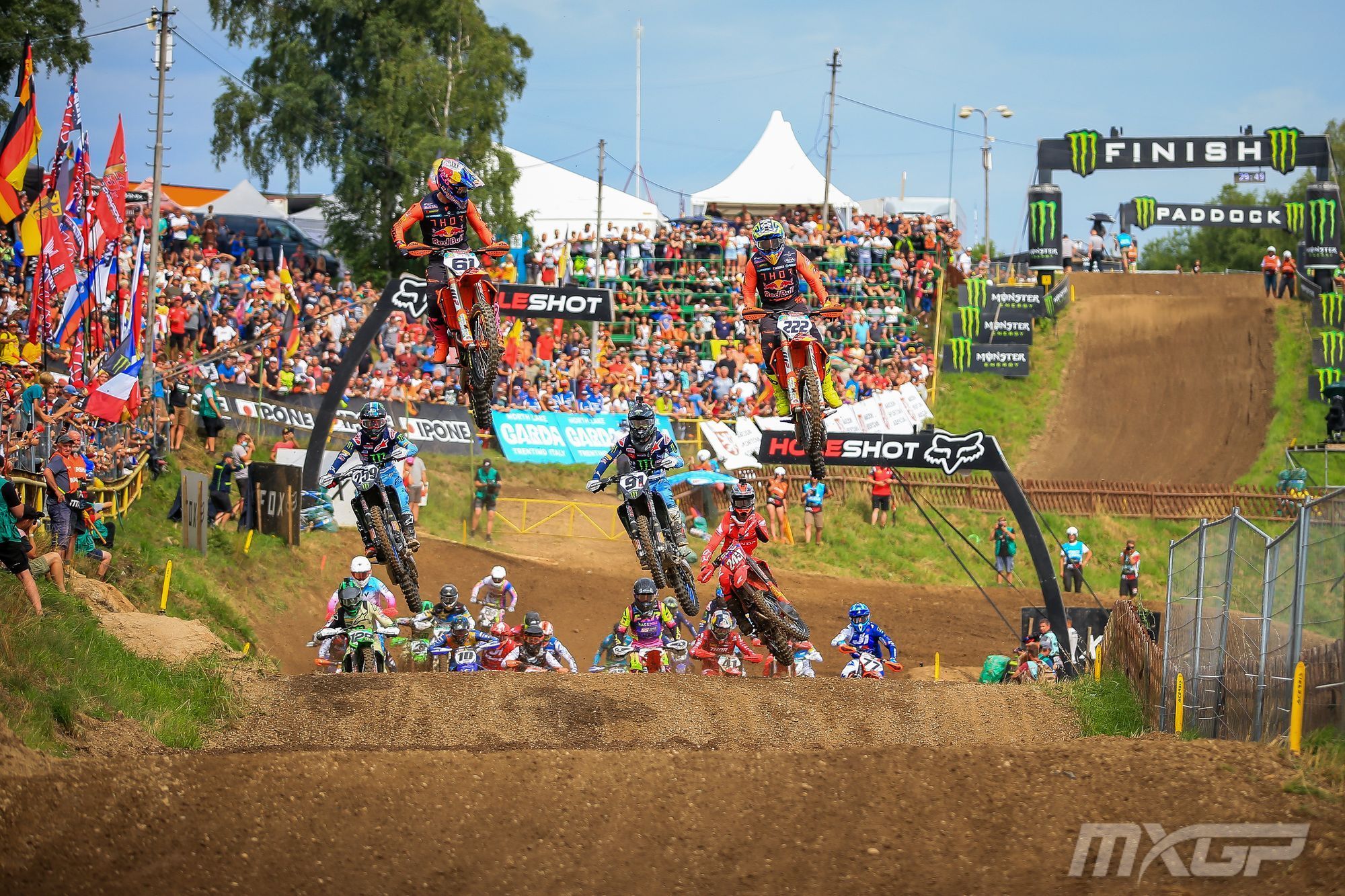 MX2: Devatenáctiletý italský dravec Mattia Guadagnini (KTM) potvrdil na loketské dráze svoji rychlost hlavně v prvním motu, kdy cílem proskočil jako první. V další jízdě se Ital nevyvaroval zaváhání, ale celkových 41 bodů mu přesto stačilo na první místo. Po vítězství na domácí půdě v italské Maggioře je to jeho další triumf! S červenou tabulkou lídra seriálu startoval v Lokti Maxime Renaux (FRA, YAM, 38b.), který byl nakonec stříbrný, bronz zaujal další mladý Francouz T. Benistant (YAM, 37b.). Renaux tak poveze na svém motocyklu červenou tabulku i v Lommelu.